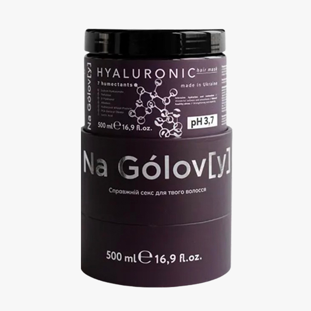 Гіалуронова маска для волосся 7 зволожувачів ТМ «Na Gólov[y]» містить синергетичну комбінацію з 7 зволожувальних компонентів і призначена для інтенсивного зволоження і відновлення пошкодженого, сухого волосся. Вона ефективно кондиціонує, пом’якшує і розгладжує волосся, надає йому блиск і гладкість, покращує еластичність і запобігає появі посічених кінчиків.