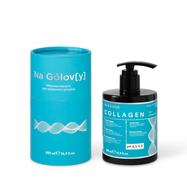 Колагеновий шампунь для волосся ТМ «Na Gólov[y]» дбайливо очищує шкіру голови та волосся, допомагає підтримувати відчуття свіжості, гладкості та природної доглянутості. Морські компоненти огортають волосся шовковистою м’якістю, надаючи йому легкість та природну еластичність.
