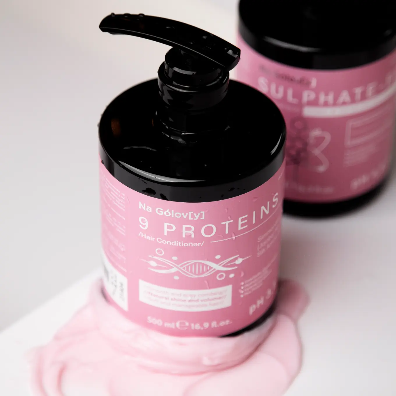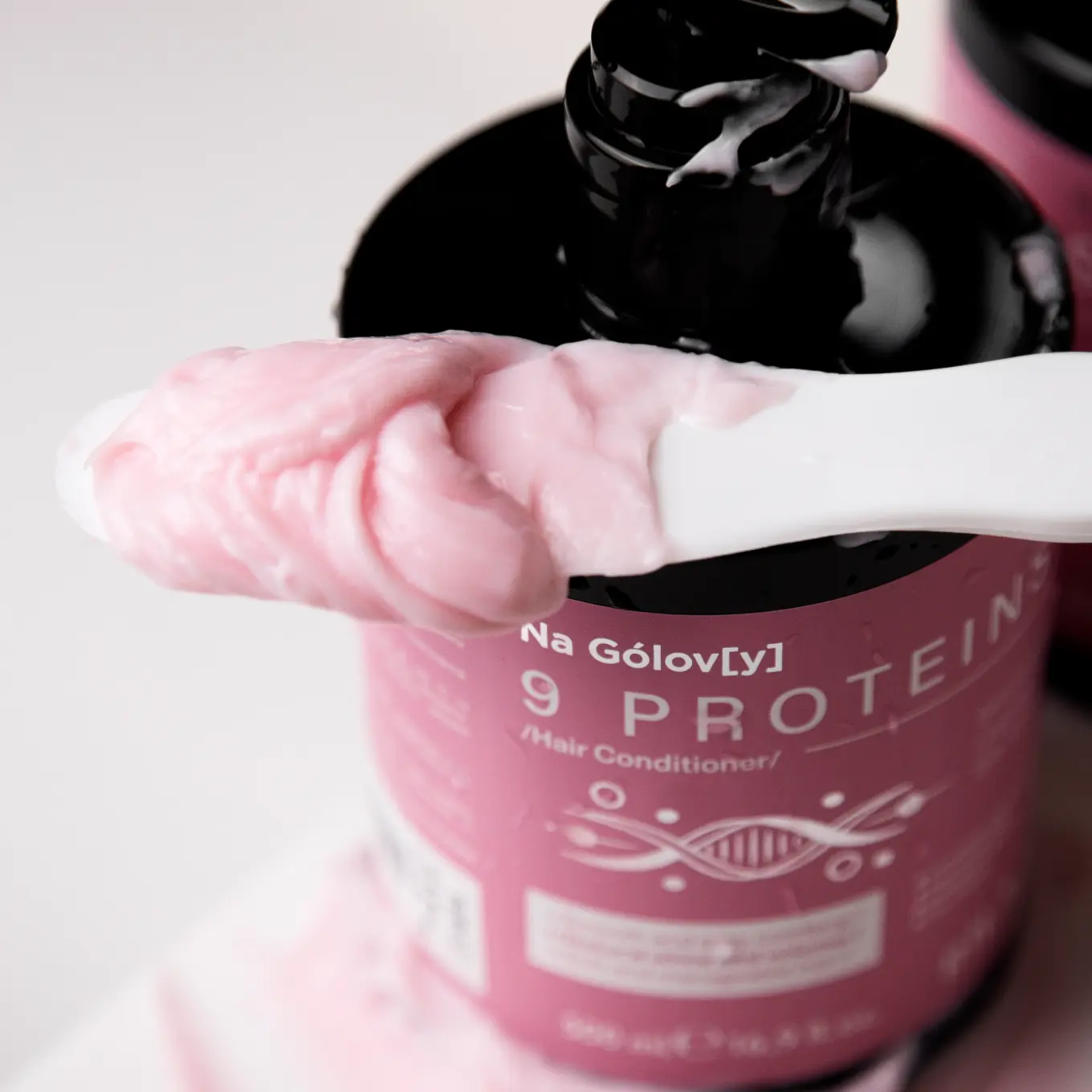 Кондиціонер для волосся 9 протеїнів ТМ «Na Gólov[y]» призначений для відновлення здорового вигляду пошкодженого волосся, яке втратило природний блиск і м’якість. Кремова текстура засобу огортає кожне пасмо та візуально ущільнює його, надаючи об’єму, а комплекс із 9 протеїнів забезпечує життєву силу та пружність. Поєднання олії жожоба й амінокислот шовку сприяє живленню, наданню природного блиску, гладкості та шовковистості вже після першого застосування.
