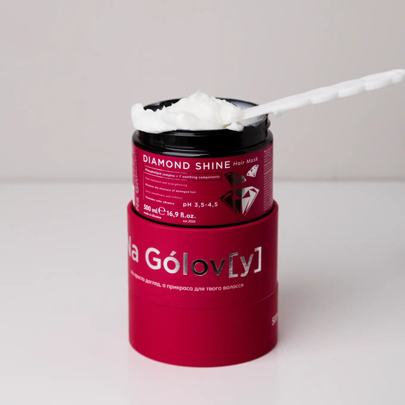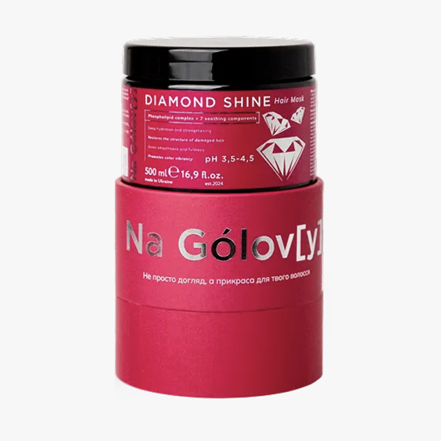 Маска для волосся Діамантовий блиск ТМ «Na Gólov[y]» призначена для зволоження і зміцнення сухого, пошкодженого волосся. Ефективно кондиціонує, розгладжує та глибоко зволожує. Має аромувальний ефект завдяки вмісту рисового крохмалю та сприяє яскравості кольору. Поєднання комплексу фосфоліпідів і 7 заспокійливих компонентів підсилює ефективність догляду за всією довжиною волосся.