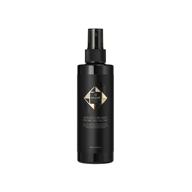 Hadat Molecular Hair Cream “ALL IN ONE” — універсальний крем-спрей для волосся, розроблений ізраїльськими експертами для комплексного відновлення та надання волоссю перламутрового блиску. Цей високоефективний продукт працює на молекулярному рівні, глибоко проникаючи в структуру волосини та відновлюючи її зсередини.
