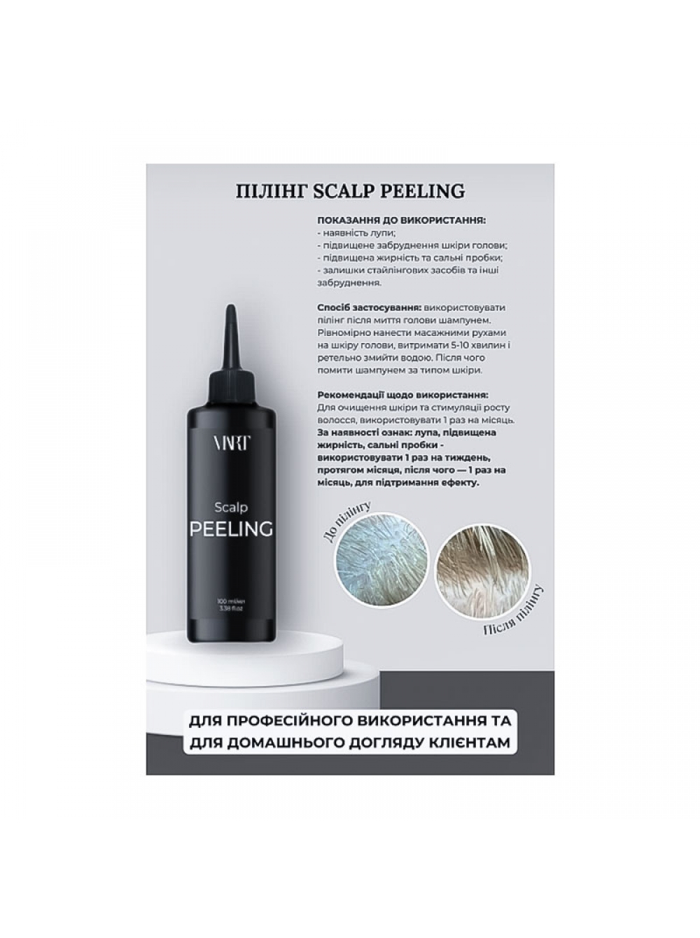 Пілінг Viart Scalp Peeling забезпечує делікатне очищення шкіри голови від залишків стайлінгу, забруднень, старих клітин, стимулючи клітинне оновлення та ріст нового волосся. Засіб знімає подразнення, поліпшує загальний стан шкіри та запобігає виникненню лупи.