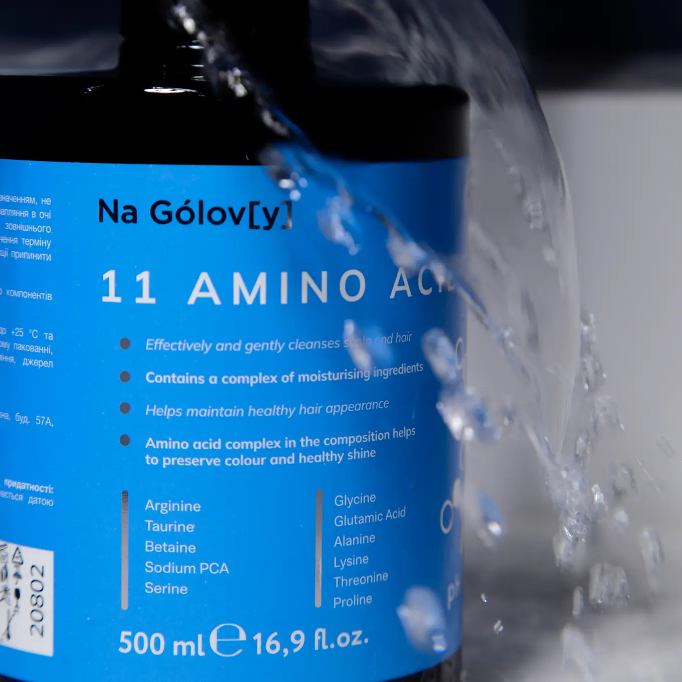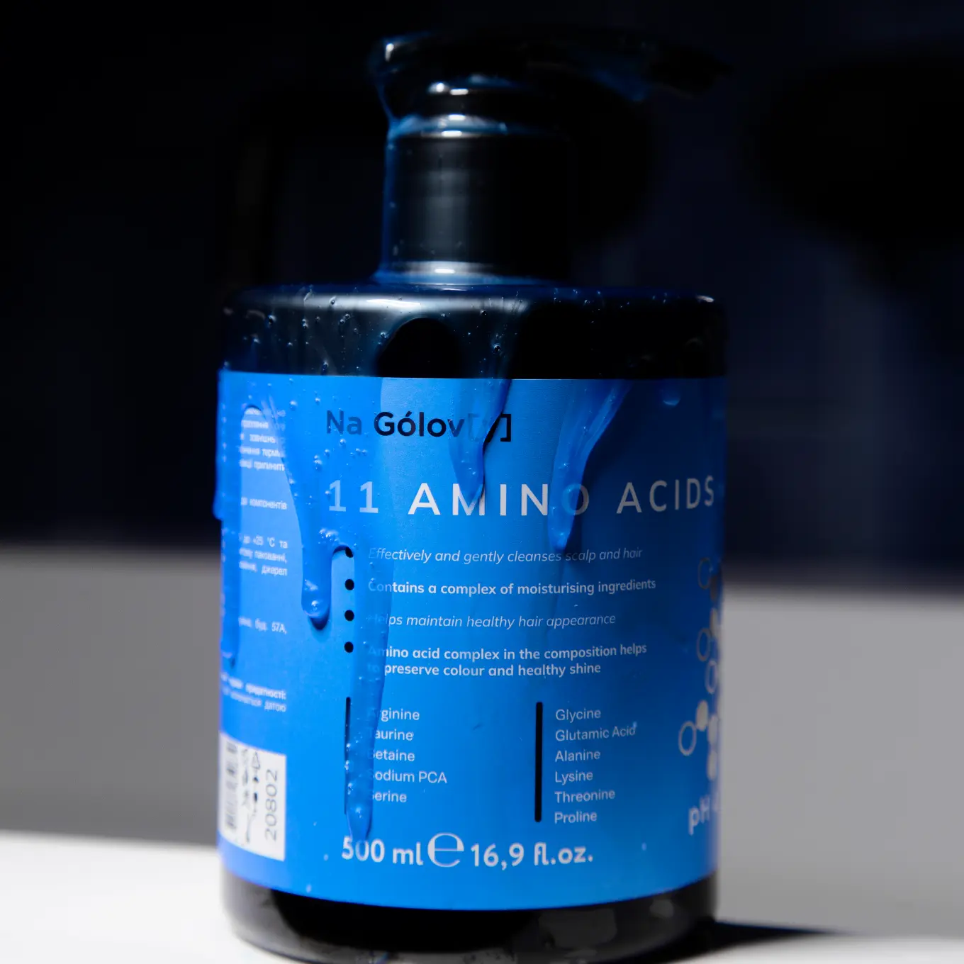 Шампунь для волосся 11 амінокислот ТМ «Na Gólov[y]» ефективно й лагідно очищує шкіру голови та волосся, не пересушуючи його. Збалансована формула шампуню містить комплекс зволожувальних компонентів, які допомагають підтримувати здоровий вигляд волосся. Синергетична комбінація амінокислот сприяє міцності, гладкості та блиску волосся, а також збереженню кольору.