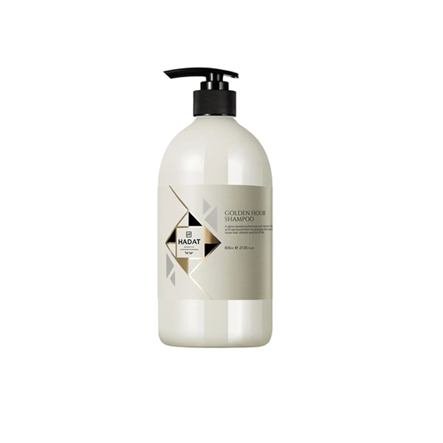 Hadat Golden Hour Shampoo – професійний шампунь для фарбованого та освітленого волосся, що забезпечує догляд та захист кольору. Його формула з м’якими ПАР, натуральними маслами аргани, жожоба і ши, а також перловою мікропудрою делікатно очищає волосся, живить і відновлює його структуру. Шампунь поодовжує стійкість кольору, надає кучерям дзеркальний блиск, м’якість і шовковистість. Активні компоненти зміцнюють волосся та підтримують здоров’я шкіри голови.