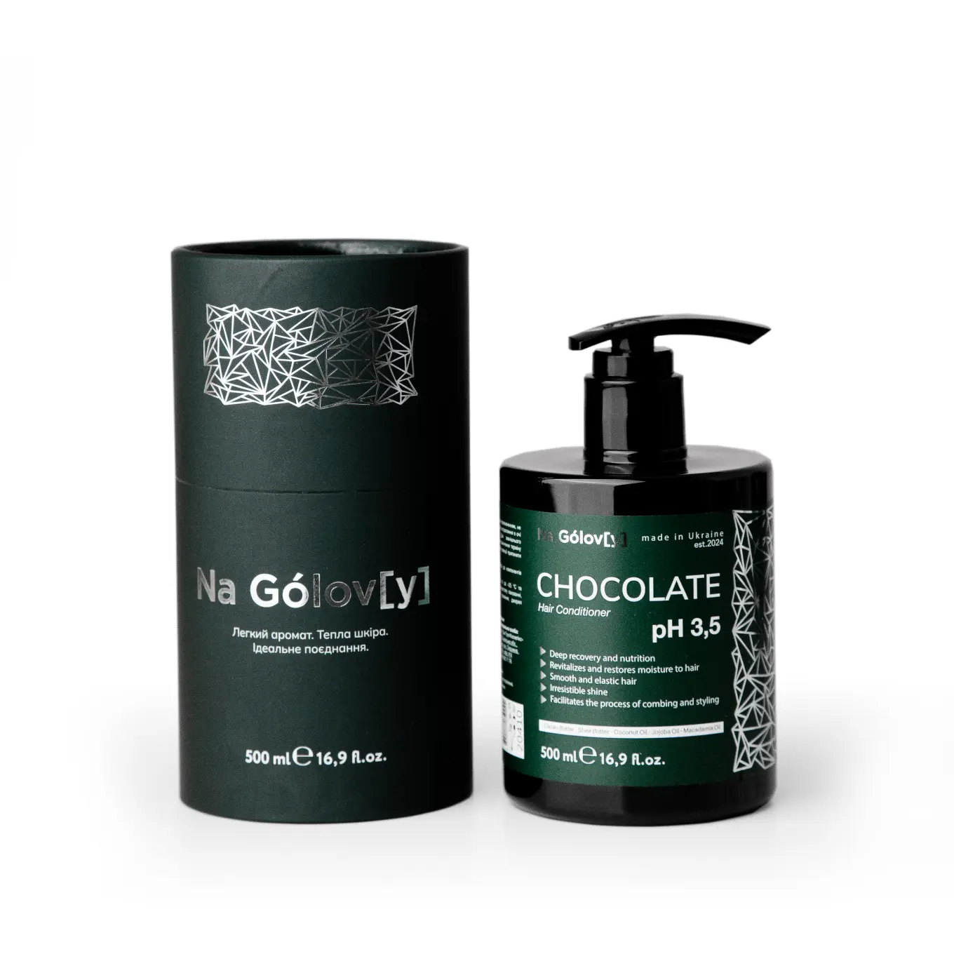 Шоколадний кондиціонер для волосся 5 олій ТМ «Na Gólov[y]» містить комбінацію з 5 живильних олій і призначений для зволоження, відновлення і реконструкції пошкодженого, сухого волосся. Він живить, пом’якшує і розгладжує волосся, надає йому блиск і шовковистість, робить більш еластичним і слухняним.